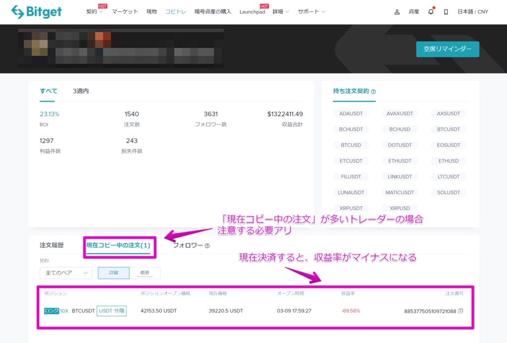 Bitget (ビットゲット) ならトレーダーの実績を詳細まで見ることができる